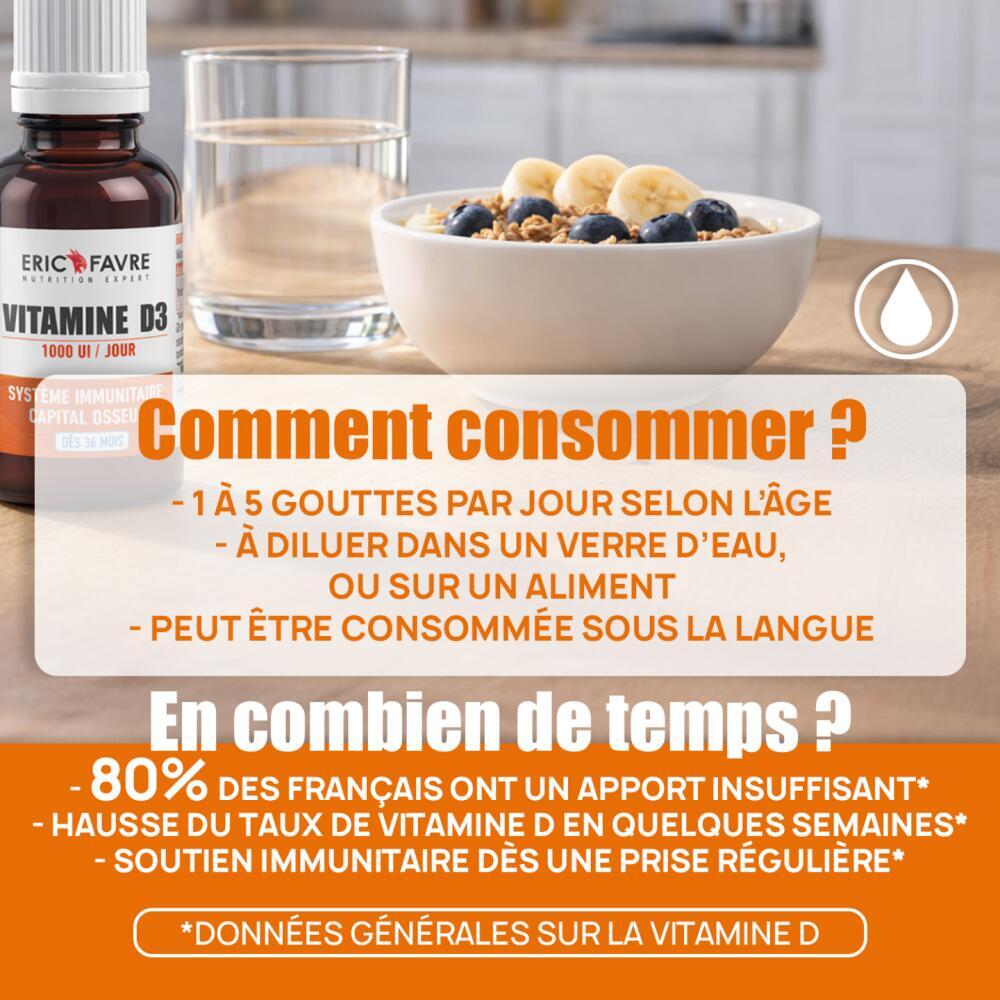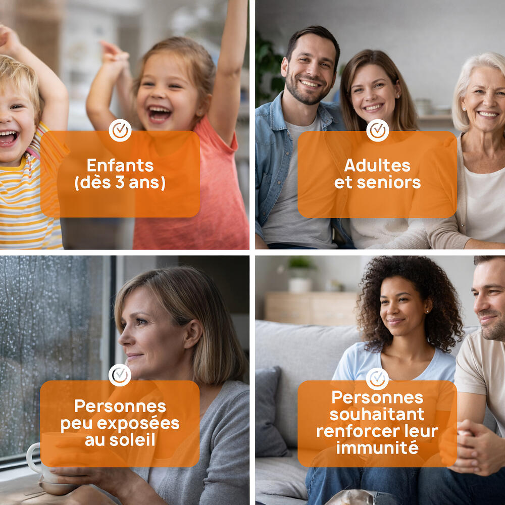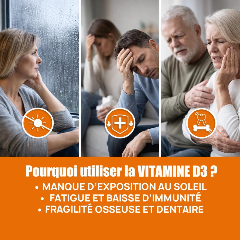 Vitamin D3, also known as the sunshine vitamin, contributes to the absorption of calcium and phosphorus from food into the bloodstream. It is therefore essential for healthy bones and teeth at any age!