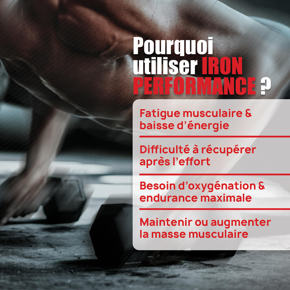Iron Performance pour augmenter vos performances pendant vos trainings ! Le fer va contribuer à réduire la fatigue pour améliorer votre endurance et repousser vos limites.