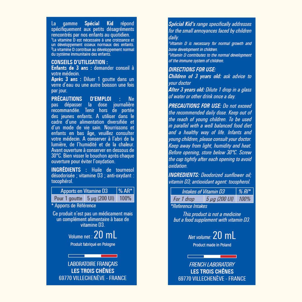 La Vitamine D3 Special Kid est un complément alimentaire sous forme de gouttes, spécialement conçu pour répondre aux besoins des enfants dès le plus jeune âge.