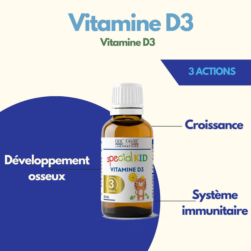 La vitamine D3 joue un rôle essentiel dans plusieurs fonctions clés de l’organisme, notamment chez l’enfant.